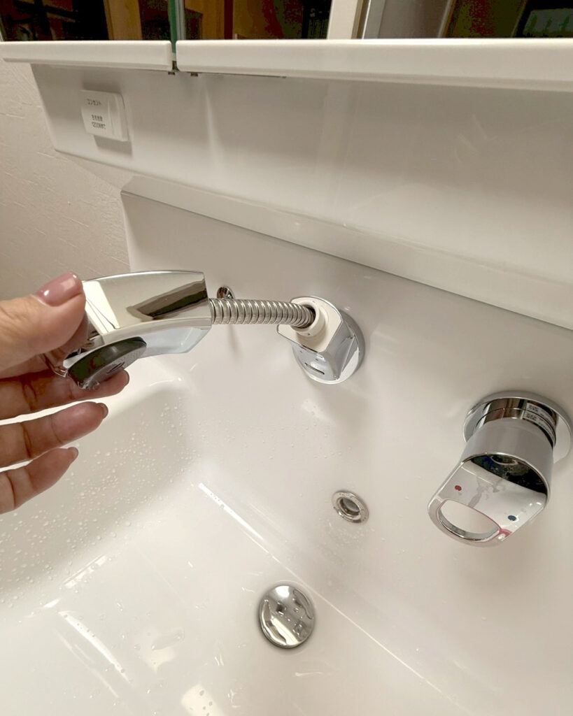 N様邸では、キッチンと洗面台の距離が近く、動線が交差してしまうため毎日の家事が少し大変に…💦